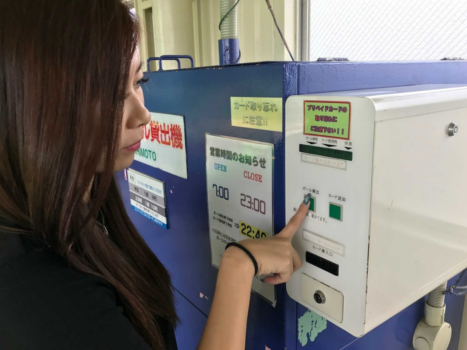 ボール貸出機でボールをカゴに入れ、打席へ!